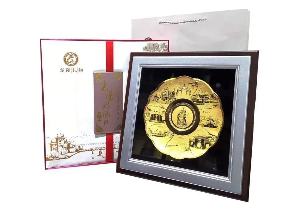 2023年湖北省首屆文化產(chǎn)業(yè)創(chuàng)新創(chuàng)意設計大賽作品展示:襄陽九洲源旅游用品科技有限公司設計的《襄陽好風日》梅花金盤榮獲二等獎。該作品借用古隆中、米公祠、襄陽古城、鹿門山、唐城等襄陽著名八大景區(qū)為創(chuàng)作素材,與襄陽城市文化名片諸葛亮巧妙結(jié)合,創(chuàng)造出全新的旅游紀念品。此款梅花金盤不僅展現(xiàn)出襄陽的美景,還濃縮了襄陽不同時期的建筑風格。