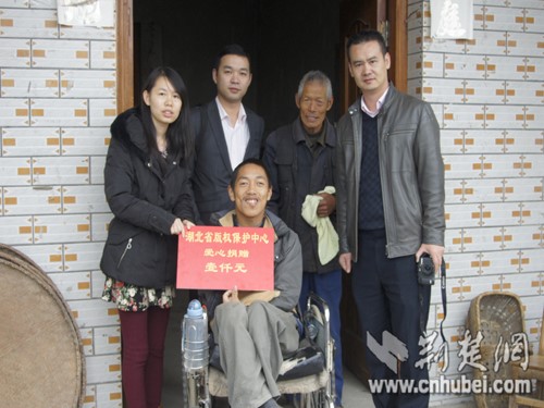 今年26歲的劉杭家住英山縣陶河鄉(xiāng)英太寨村一組,從小患小兒麻痹,一歲多點(diǎn)的時(shí)候一次高燒致神經(jīng)癱瘓,從此他只能走路靠輪椅,吃飯靠舔,因?yàn)樯眢w原因也從沒(méi)上過(guò)學(xué)。