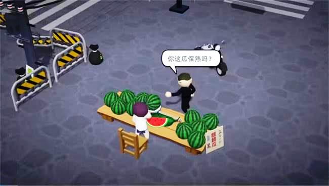 紅星新聞記者搜索發(fā)現(xiàn),這款游戲軟件《西瓜攤主大戰(zhàn)買瓜人》在網(wǎng)上小有名氣。游戲3D畫面中,玩家扮演西瓜攤老板,憑借技能來抵擋買瓜人一眾小弟搗亂的過程。
